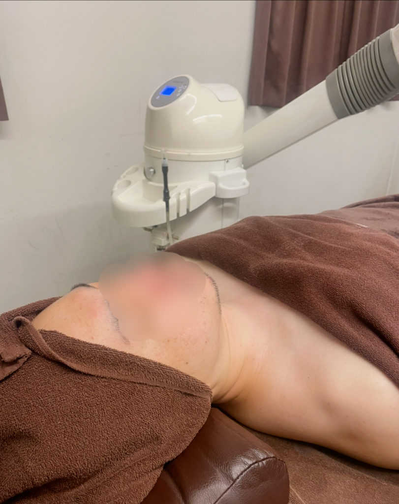 フェイシャルではスチームを当てながら施術が始まり、専用の機器を使ったケアが中心でした。